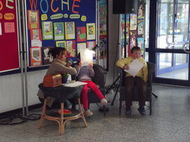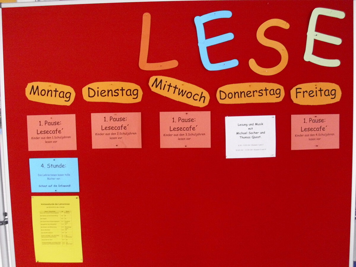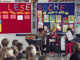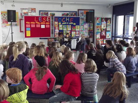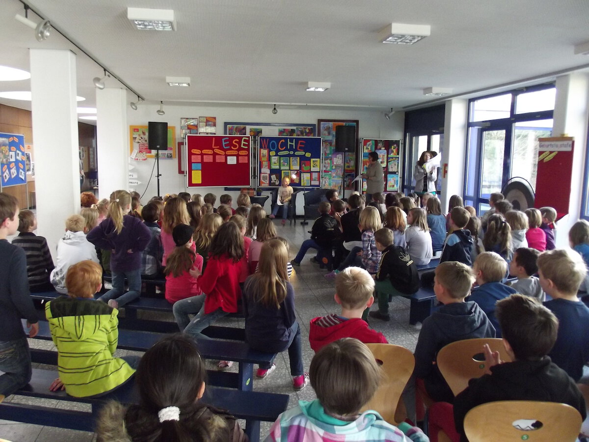 Fritzi Bender (2011). 2013 war das Team des Buchhändlers Michael Sacher und des Musikers Thomas Quast zu Gat, bei denen die Kinder eine tolle Mitmachlesung genießen konnten. Auch das Mitmachtheater "Vom Löwen, der nicht lesen konnte" war ein tolles Elebnis. Zum Abschluss der Lesewoche findet alle 2 Jahre unser Frühlingsfest mit einem Bücherstand und Kindertrödelmarkt statt.